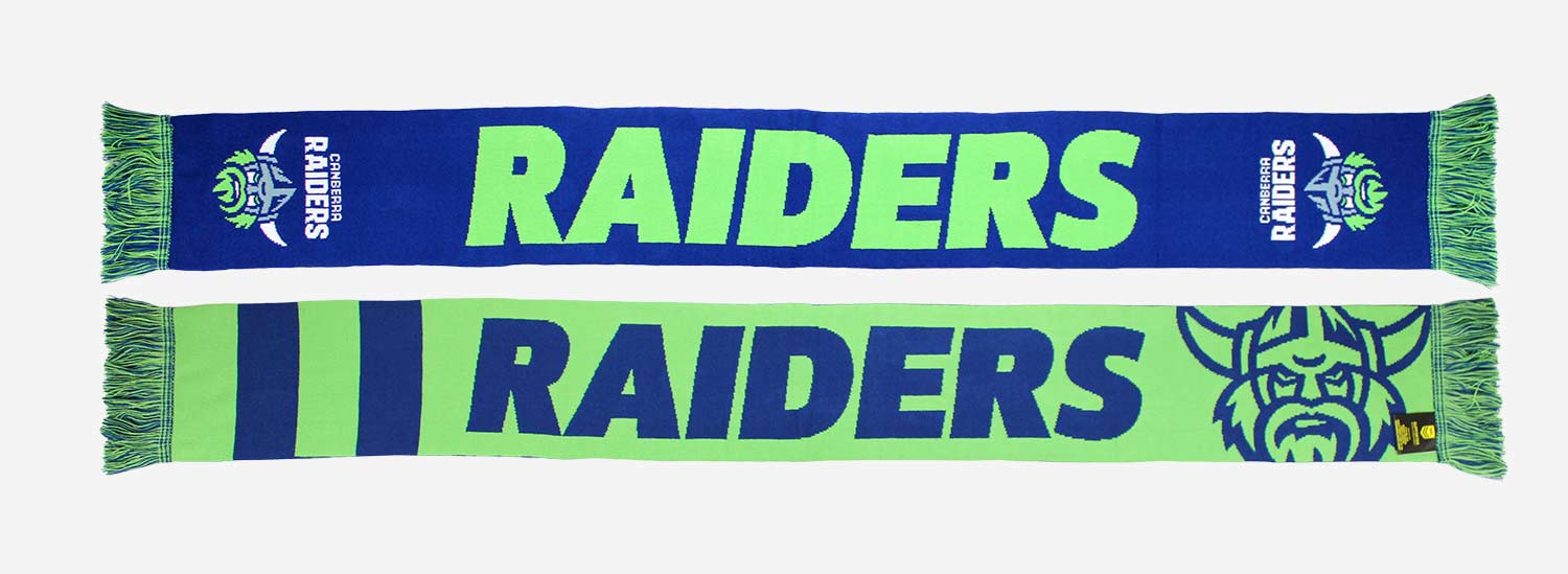 Stay warm in style with our reversible Canberra Raiders scarf. Featuring vibrant team names and crafted with high-quality jacquard knit, this scarf offers versatility with alternate designs and color schemes on each side. Defend yourself from the chill while showcasing your team pride!